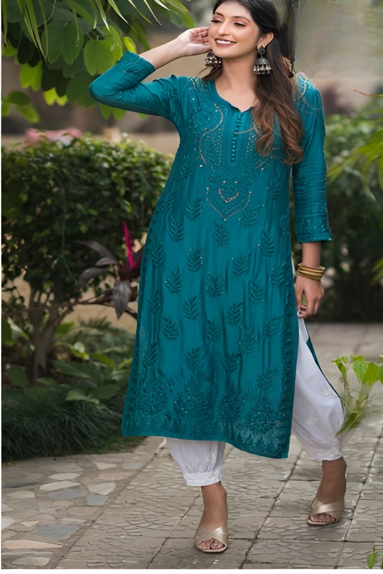 ALIYA MUSLIN CHIKANKARI KURTI Jude Color