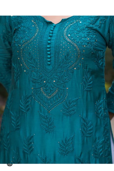 - Design: Hand-embroidered Chikankari with delicate floral motifs.