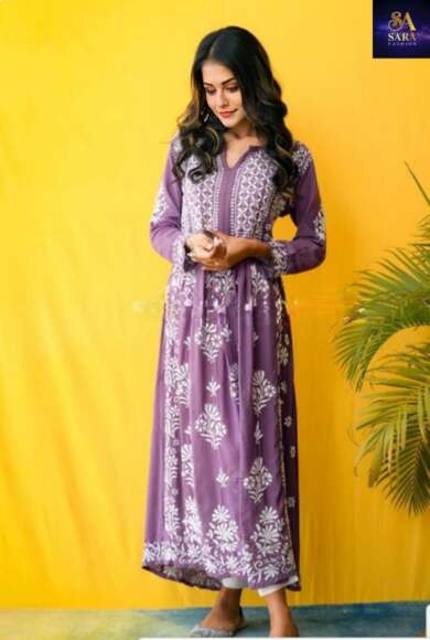 Sara Fashion Designer Studio Presents: Amalia Lavender Modal Floral Chikankari Kurti
