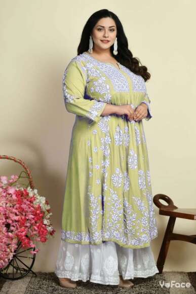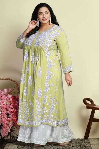- Design: Hand-embroidered Chikankari with delicate floral motifs.