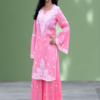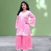 Sara Fashion designer studio presents Sabnam  Straight Chikankari Sharara set motifs with ‘intricate embroidery’ are delicately placed on this handmade Chikankari Kurti, this perky hand embroidered Lucknowi Chikan Kurti is a reminiscent of blooming springs and the serenity that surrounds it.